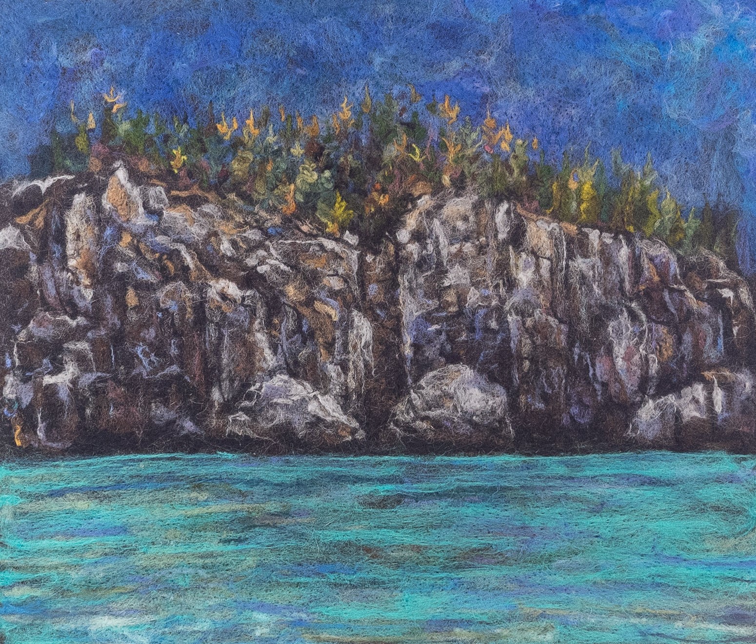 I am a fiber artist drawn to capturing the wonders in nature. I enjoy the process of layering a variety of materials such as wool, silk, wire, wood, and paper to create a captured place or moment. As I introduce the viewer to the tactilely enticing juxtaposition of various textures, I invite them to examine subtle, yet delicate details found only when we stop and ponder.